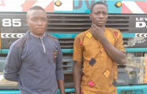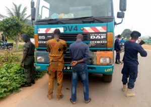 He said that the two suspects, Akeem Adesola and Benjamin Adeniyi, were arrested with their truck, a blue Leyland DAF with registration number EKY 189 XV along Iseyin/Saki Road.