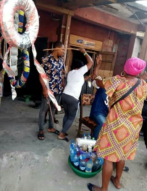 From our findings, we see say those wey get stores around there dey hold her to stop, but she dey shout like agbakara dey attack anybody wey dare to hold her.