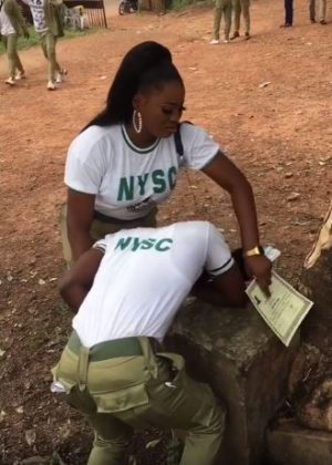 The incident happened on Wednesday, October 29. The corp member, identified as Balogun Babatunde Temidayo bent his knee and proposed to his girlfriend, Adejoke.