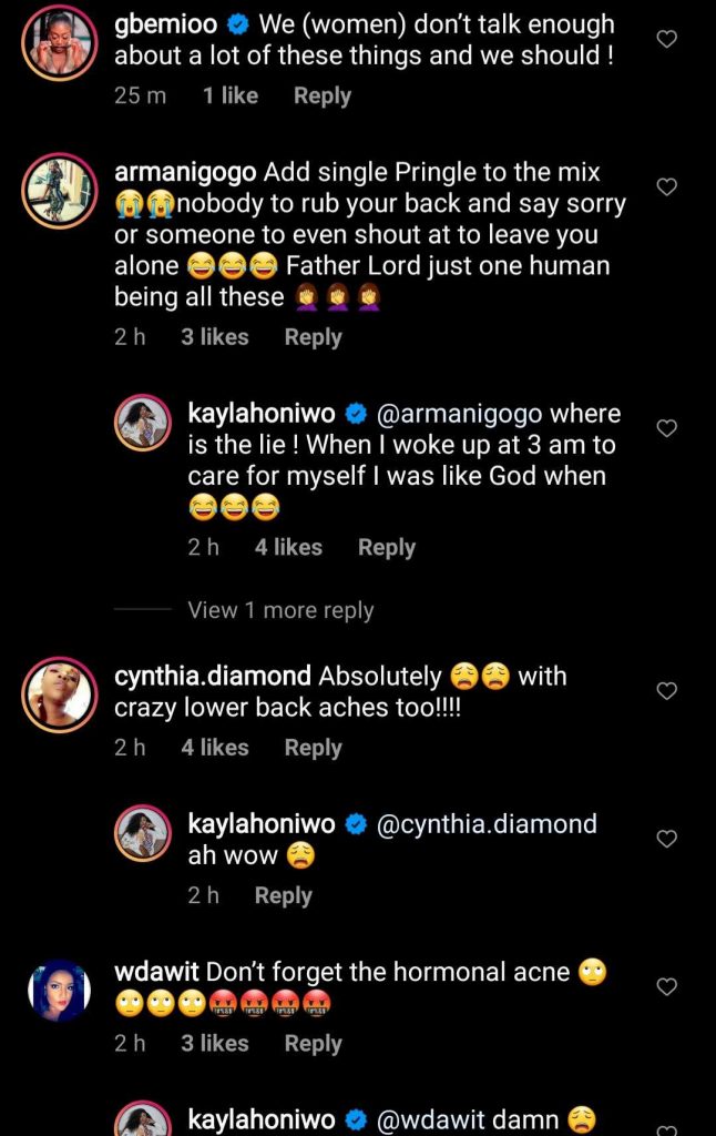 Nigerian OAP, Kaylah Oniwo took to social media to lament about the stress women go through during ovulation.