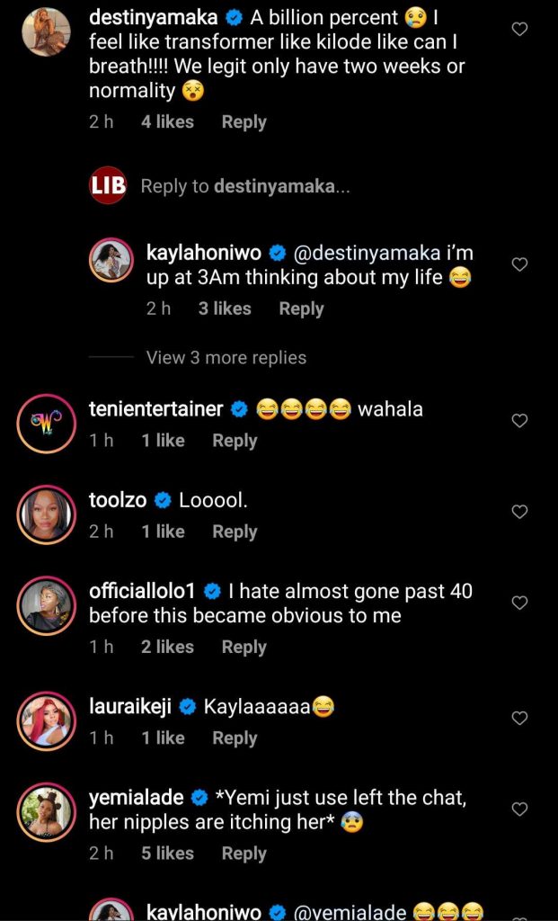 She tweeted: “I don’t think we often talk about the drama that comes with ovulation ! Na wa . Cramps/abdominal pain, slimy stretchy vaginal discharge, horny AF, sore nipples . Only one person, as if your normal menstrual cycle isn’t enough Kai!!!!!!”