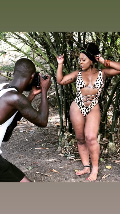 Popular on air personality and Soundcity presenter getting captured in a leopard bikini for a fashion campaign in Ghana.