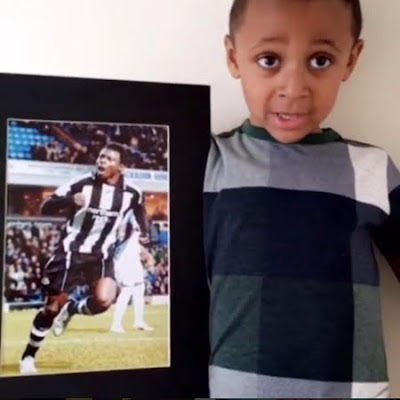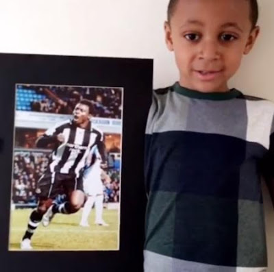 Shanghai Shenhua striker Obafemi Martins took to Instagram to share a video of his son TY singing ‘Happy Father’s day to him while holding a picture of Obafemi when he played for Newcastle.
