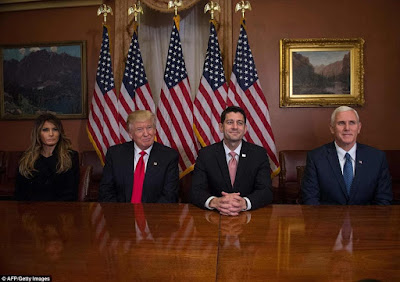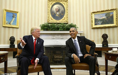 It was the very first time both men will meet each other, as Obama showed Trump, his wife Melania, Vice president elect Mike Pence, Mrs Pence and House Speaker Paul Ryan round the White House.