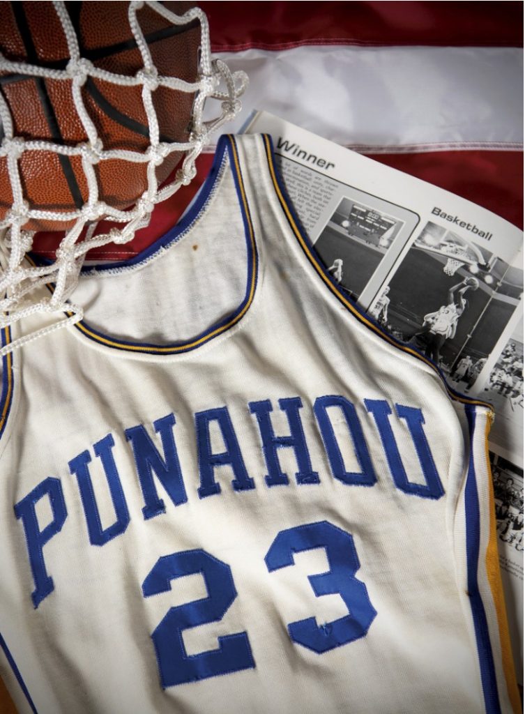 The number 23 basketball worn by an 18-year-old Obama during his years at Punahou high school in Hawaii as a Senior, was offered for auction by Peter Noble who was three years behind Obama at Punahou School.