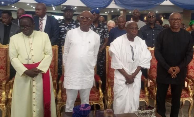 Obasanjo, Obi and Kukah walked into the venue at exactly 2:45pm and were greeted by a huge crowd.