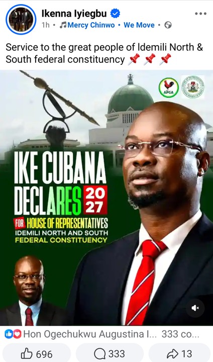 Ikenna Iyiegbu is Obi Iyiegbu’s(Obi Cubana)brother. He has declared to contest for house of representatives under APGA to represent the Idemili North and South Federal constituency.