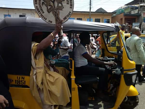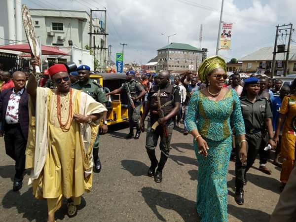 Governor Willie Obiano today embarked on a victory road march through major streets of the state capital to express gratitude to Ndi Anambra for their overwhelming support to him during the just concluded governorship election in the state.The governor who had just received his certificate of return from INEC, was joined by his wife, Chief Mrs Ebelechukwu Obiano as he marched round the town, acknowledging cheers from the people. At Eke Awka Market, traders chanted tirelessly in praise of the historic victory of the governor.