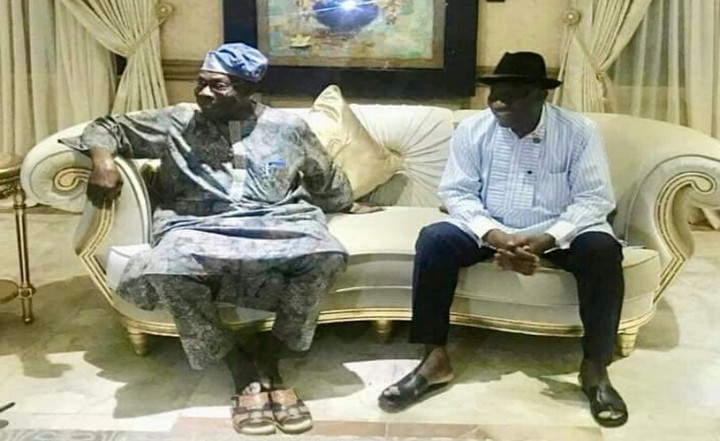 Former President of Nigeria Chief Olusegun Obsanjo, finally meet with FormerPresident Jonathan at his home.