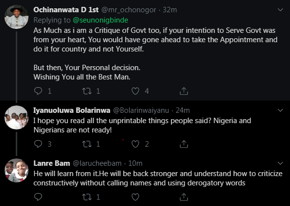 His appointment by the same government he had criticized in the past four years generated controversies as the development did not go down well with some Nigerians.