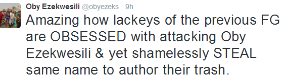 Former Minister of Education, Oby Ezekwesili, took to her twitter handle to react to a report that surfaced online yesterday in which she is alleged to have sent out a Whatsapp message saying Pres. Buhari and not former President Jonathan, is responsible for the current economic recession. Many media platforms had shared a Whatsapp message quoting her to have said the current economic policies of the Buhari-led administration was responsible for the current economic recession.