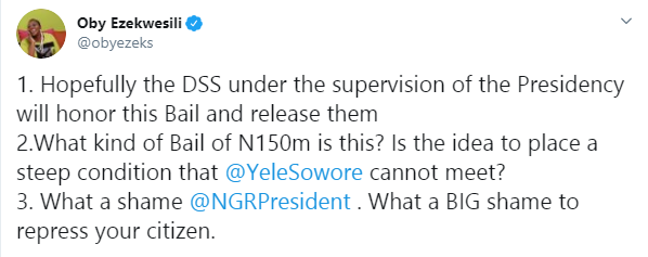 “What kind of bail of N150m is this? Is the idea to place a steep condition that Yele Sowore cannot meet?