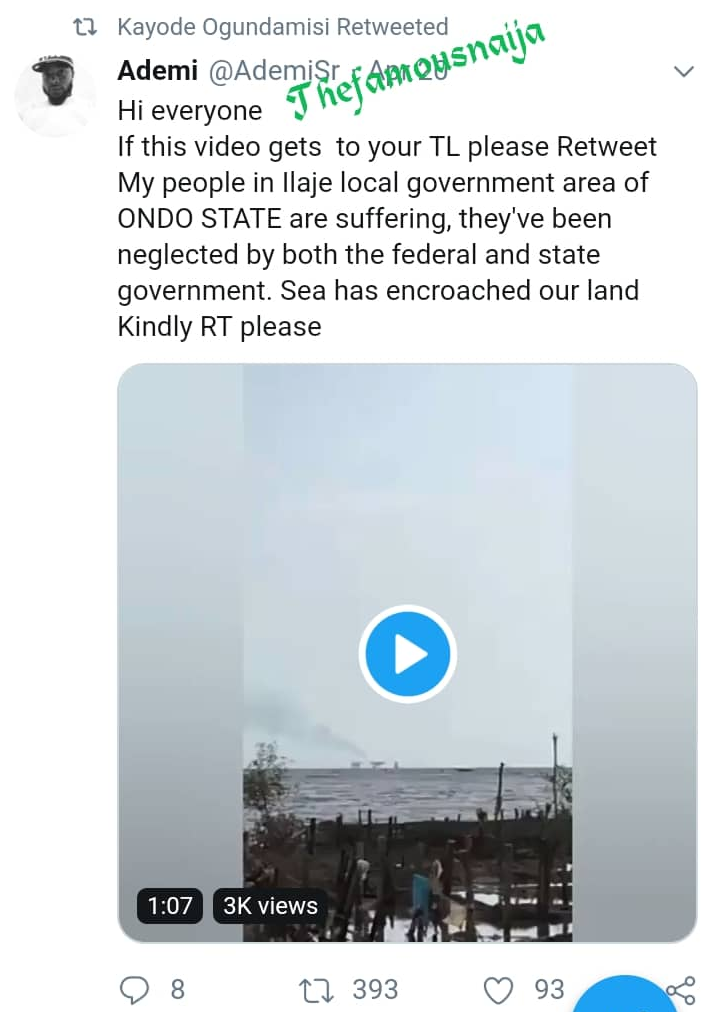 A Twitter user, Ademi @AdemiSr has shared a video showing how ‘ocean’ sacked the community members, destroyed houses and other structures in Ilaje LGA in Ondo State.