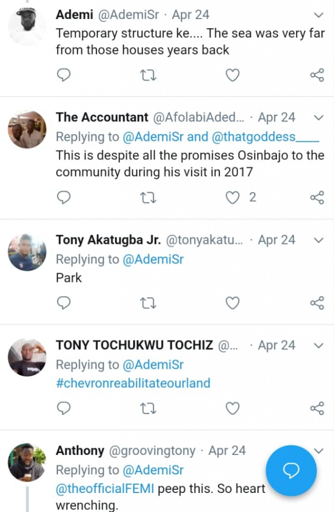 My people in Ilaje local government area of ONDO STATE are suffering, they’ve been neglected by both the federal and state government. Sea has encroached our land