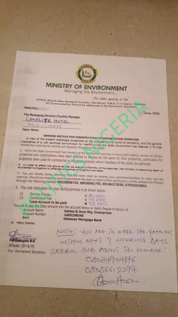 The letter further stated those ready for the exercise should pay the charges into a private bank account, Sekbol & Sons Nig. Enterprises with Gateway Mortgage Bank.