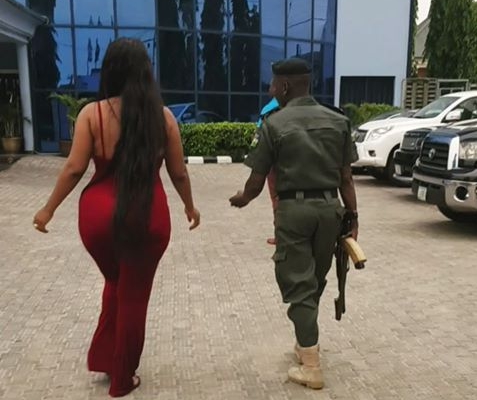 Controversial actress Daniella Okeke show off her bum with a mobile police in new adorable photo.