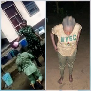 Recall that a video went viral on Thursday, showing a female military officer pouring dirty water and hitting a female corps member who was forced to kneel down while the act went on.