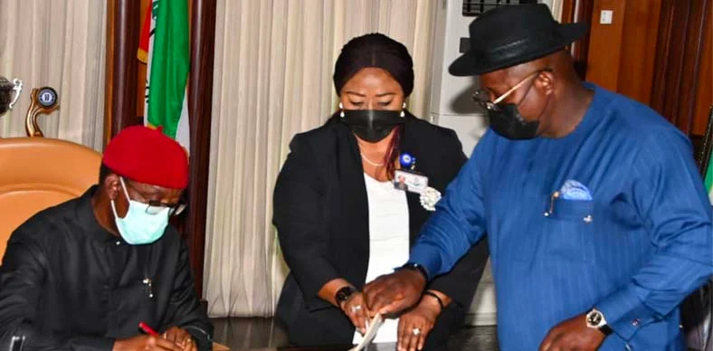 The Bills had earlier been presented to the governor for assent by the Speaker of the state House of Assembly, Rt. Hon. Sheriff Oborevwori, who was accompanied by his Deputy, Christopher Ochor; and other principal officers of the state legislature.
