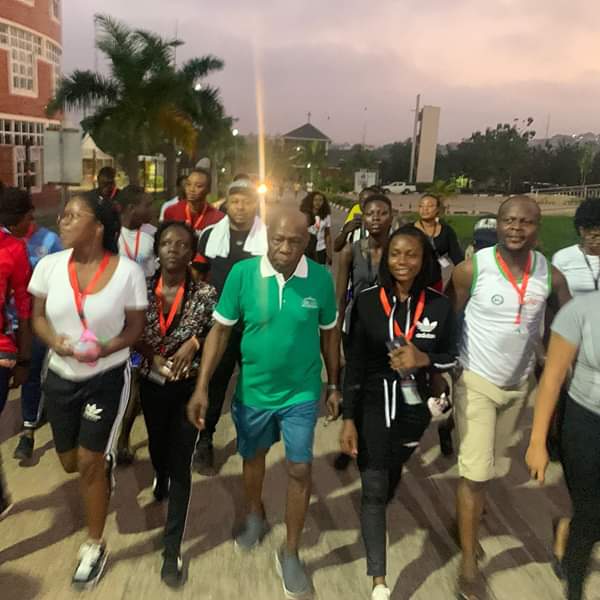 Tonto Dikeh’s ex husband Olakunle Churchill joined former president Olusegun Obasanjo in an early morning drill(long walk) at his residence in Abeokuta during the annual Presidential Youth Mentorship Retreat 2019.