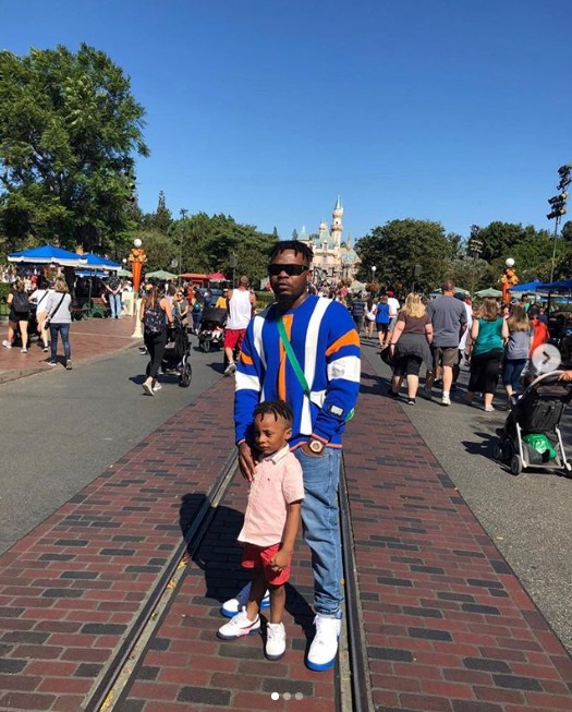 Rapper, Olamide Adedeji, popularly known as Baddosneh, is currently in the U.S with his son, Batifeori Maximilliano Adedeji, and they visited Disneyland together.