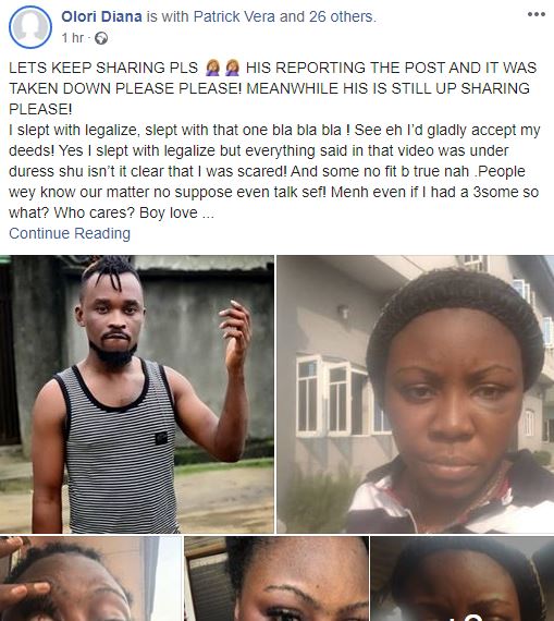 I slept with legalize, slept with that one bla bla bla ! See eh I’d gladly accept my deeds! Yes I slept with legalize but everything said in that video was under duress shu isn’t it clear that I was scared! And some no fit b true nah .People wey know our matter no suppose even talk sef! Menh even if I had a 3some so what? Who cares? Boy love me keep me down for six years no nothing I Dey follow am like mumu dy fight gals Bcus the guy na casted Liar! Dey sleep around with my friends and my own cousins shu my baebs wey Dey hear our matter make orna talk na ! ��! Dude is a chain crack smoker.
