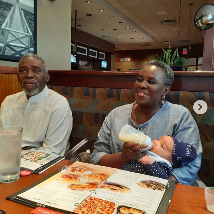 Their son, Olusoji Jacobs welcomed his first child with wife, Boma in April.