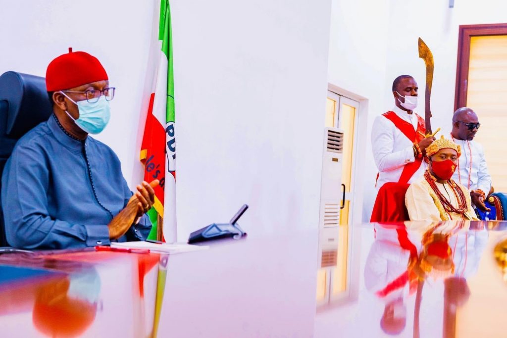 His Majesty Ogiame ATUWATSE III visit the H.E Ifeanyi Okowa at the State House today.