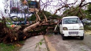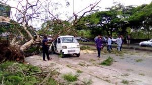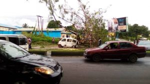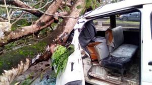 It has been reported that as many as eight passengers and a driver escaped death by the whiskers on Tuesday September 8, after a huge tree branch broke off from its trunk and fell on a vehicle in Calabar, the Cross River State capital.