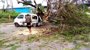 OMG! Eight Narrowly Escape Death As Huge Tree Falls On Commercial Bus In Calabar (Photos)
