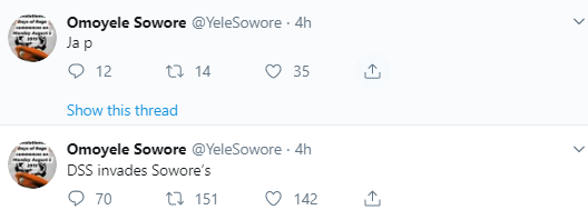 Sowore posted a distress tweet at exactly 1:25 am with an eyewitness confirming that his phone was forcefully taken from him. His tweet reads