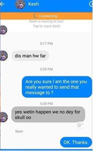 It is very easy to know a child from a bad home. Such a child has no respect for his parents at home and his teachers at school. If the opportunity is available, he beats them up. But the end of such a child is a total disaster. As a teacher, I releate well with my students. The responsible ones know this and they respect me for it. It is very true that out of every 12 there must be one Judas. The boy you are looking at here is one of such good-for-nothing boys. This evening I got his message: dis man how far? I thought it wa a message sent by mistake to me. He replied in the affirmative: yes o wetin happen we no dey for school ooo. You can see the attached message. He goes by the name Marley Kesh. All underaged friends on my friends list shall be blocked. How will you describe him?