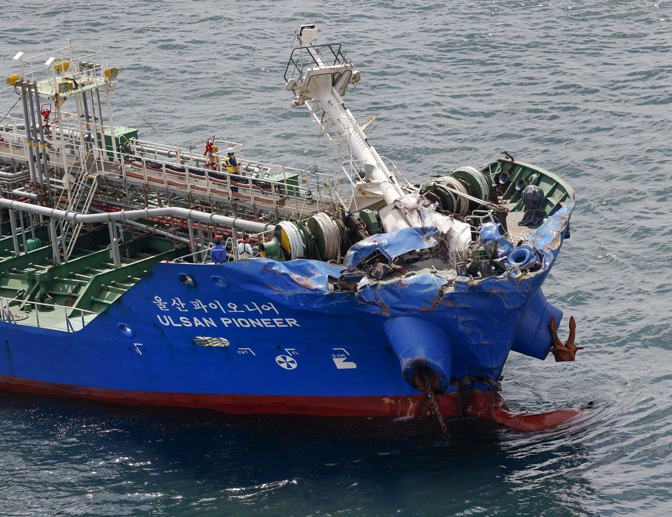 Japan’s Transport Safety Board is conducting an investigation on board the chemical tanker, identified as the Ulsan Pioneer, which remained near the accident site, NHK said.
