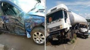Irelewuyi explained that the crash involved an Iveco tanker, without registration number, a white Mitsubishi bus with registration number XA482MKH and a blue, private Peugeot saloon car with registration number AJG652AA.