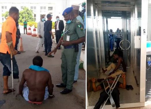 Physically challenged persons from the Niger Delta region stormed the National Assembly to protest as they claimed they are being neglected.