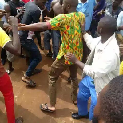 The students were staging a protest over insecurity on campus as some robbers attacked some hostels in the school last night, killing a 100 level Banking and Finance student in the process.