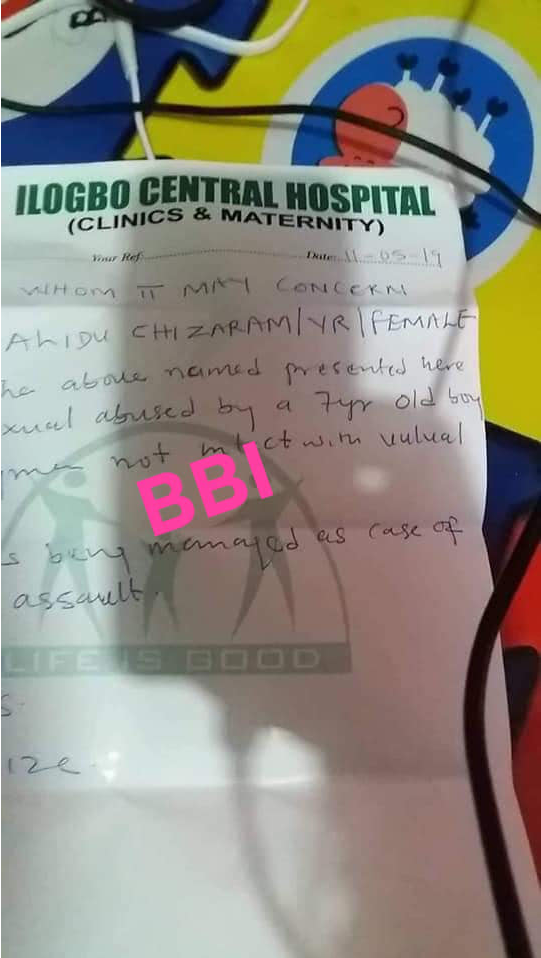 A one year and six month old baby girl has been allegedly raped by her seven year old cousin in her family compound in Lagos state.