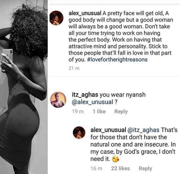 Ex-BBNaija housemate, Alex, has said that ladies who wear butt pads are insecure about their bodies.