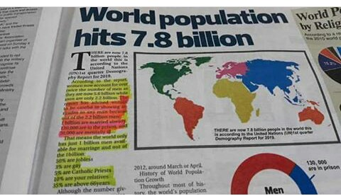 According to the United nations first quarter Demography report for 2019,the World population has hit 7.8billion but guess what?There is a’situation’ that advises women to be humble.