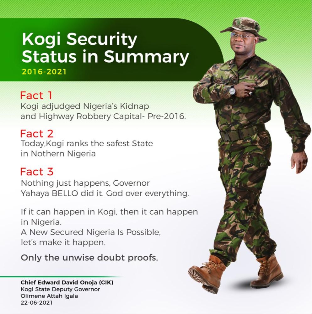 According to him, Kogi was systematically worked on to achieve its “peaceful status,” and that it’s just a matter of replication for Nigeria to be set free.