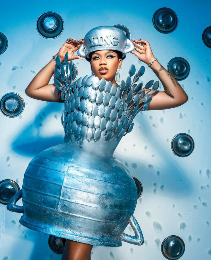 Celebrity stylist, Toyin Lawani has left her fans in awe after wearing a pot costume for her 41st birthday celebration.