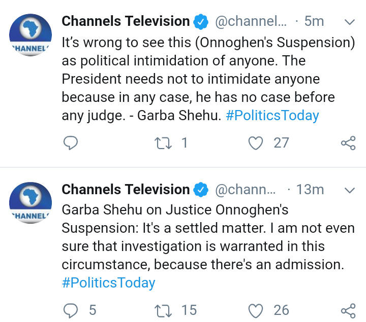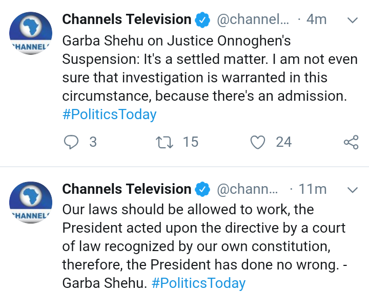 Garba Shehu on Justice Onnoghen’s Suspension: It’s a settled matter. I am not even sure that investigation is warranted in this circumstance, because there’s an admission