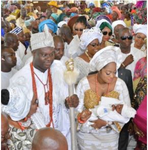 The Ooni of Ife, Oba Adeyeye Enitan Ogunwusi and his Queen, Prophetess Silekunola Naomi dedicated their son and royal prince in Church yesterday.