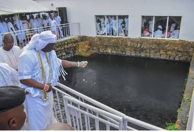 Ooni of Ife, Ooni Adeyeye Enitan Ogunwusi Ojaja II, on Saturday July 27th, led thousands of Osun faithfuls who stormed his Ile Oodua Palace across the country to celebrate the 2019 edition of Ita-Osun festival.While addressing newsmen after offering supplications to the deity, the Ooni described Osun Sengese as the progenitor of all water deities across the world, adding that the festival was meant to acknowledge the deity which is known for fortunes.“As you all known that water is indispensable to our survival as human, Osun Sengese is a major deity in Yoruba land known for the performance of wonders through the water. Water has numerous healing and prosperity potentials as brought to us by Sengese, the mother of all water deities across the world. I pray that we shall always be fortunate, may our glory never be buried under water and may we never encounter flooding. Happy celebration.” he saidThe festival was witnessed by traditional rulers, high chiefs, foreign tourists from Brazil, Ireland Cuba to join the Osun worshipers who had come from all the states of the Yorubaland