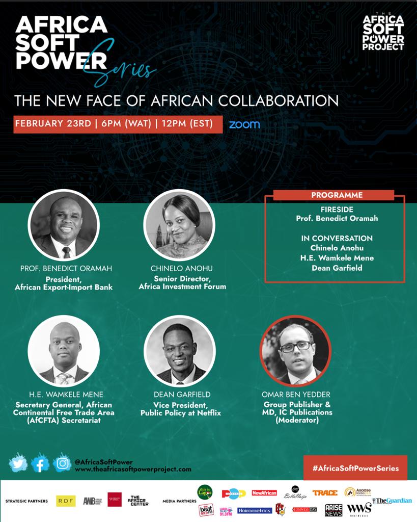 Professor Benedict Oramah of the African Export-Import Bank (Afreximbank), Ms. Chinelo Anohu of the Africa Investment Forum, and H.E Wamkele Mene of the African Continental Free Trade Area (AfCFTA) and Dean Garfield, Vice President, Public Policy at Netflix will all participate as panelists at a virtual session titled ‘The New Face of African Collaboration’.