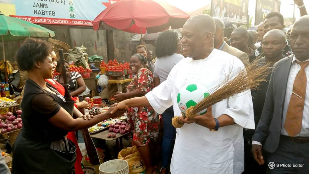 The former Governor “Nwa Aba” as he is also called took a long walk on the streets of ABA in his usual manner engaging in various activities to the admiration of the people.