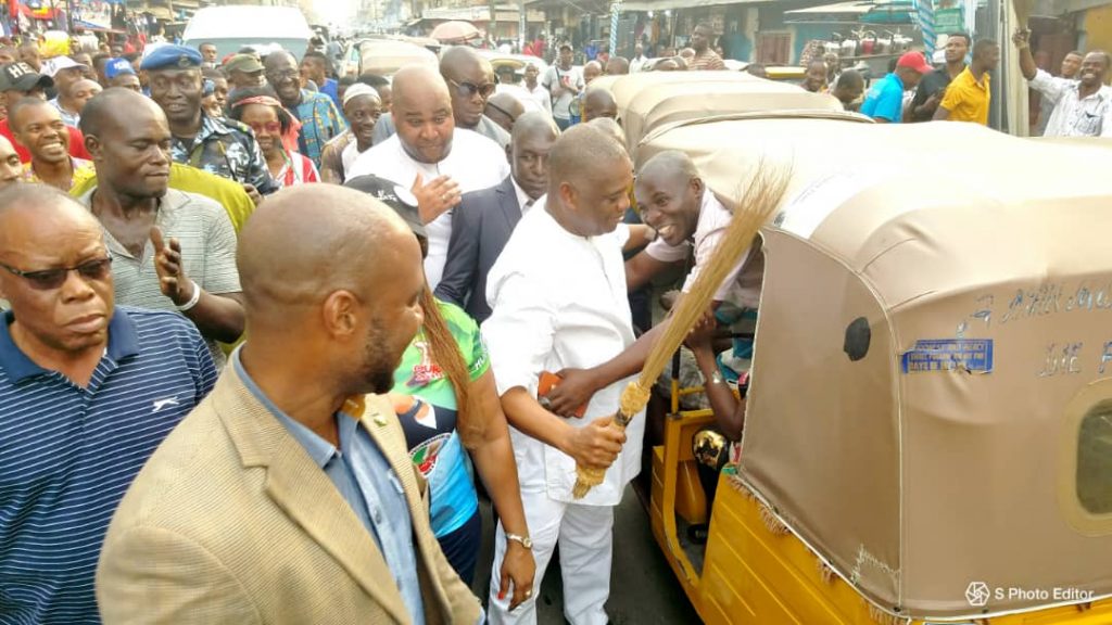 As the campaigns for the February 16th general elections formally came to close yesterday the All progressive Congress (APC) candidate for Abia North senatorial zone and fomer Governor Dr Orji Uzor Kalu hit the streets of ABA in Abia State for an unexpected mobilization street walk.