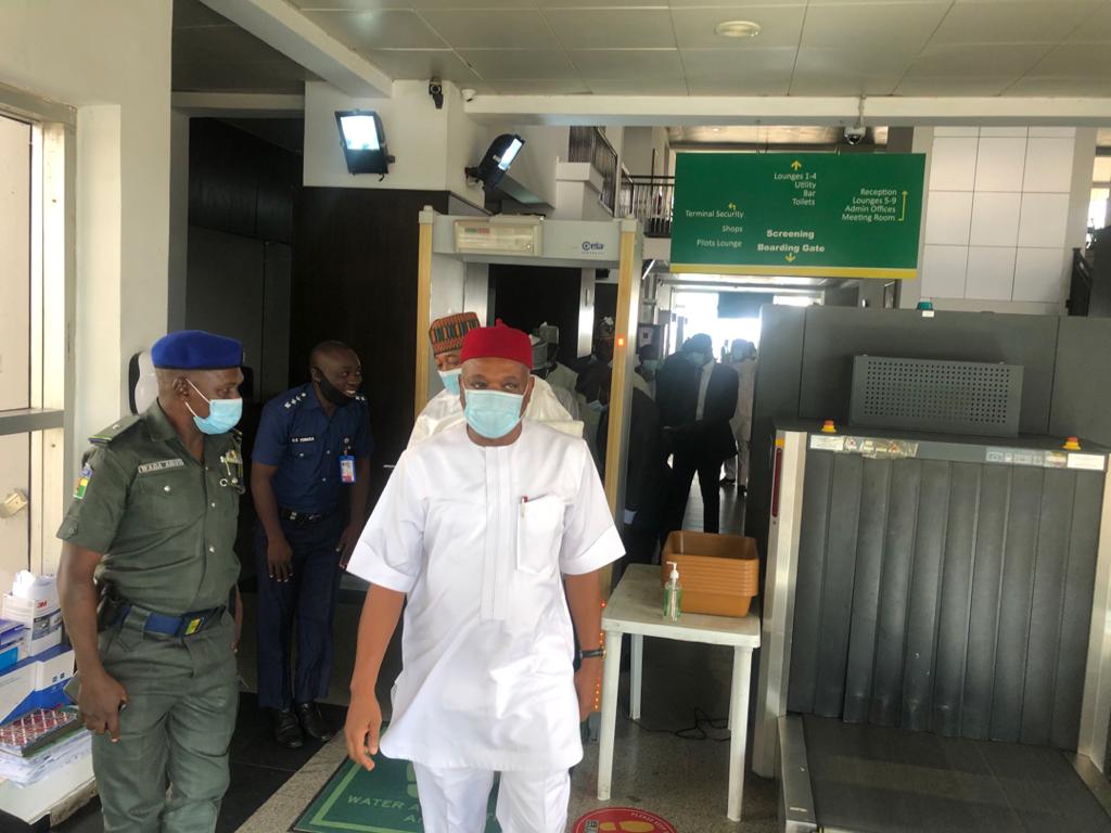 Kalu was seen visibly angry as he left the airport unceremoniously to his convoy . Airport staff who usually benefits from Kalu’s generosity were also seen wearing long faces.