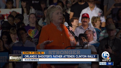 The father of Omar Mateen, the Orlando shooter who killed 49 people at the Gay nightclub, Pulse nightclub in June, attended a rally that Hillary Clinton held in Florida on Monday in Kissimmee, not far from where the shooting happened on June 12.