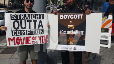 Protesters led by the Rev Al-Sharpton lined near the celebrity drop-off for the Oscar Awards to protest the lack of diversity among this year’s nominees. The crowd were about 300 armed with signs and boom boxes.