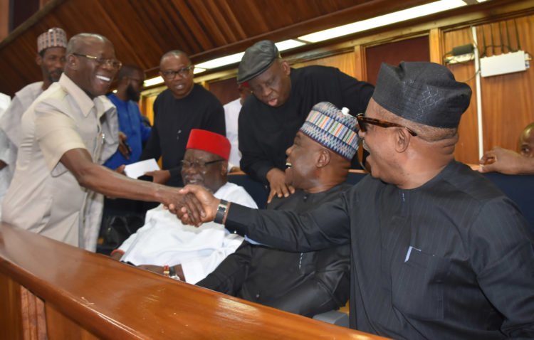 Oshiomhole And Peter Obi Exchange Greetings In Court (Photo) - 9jaflaver